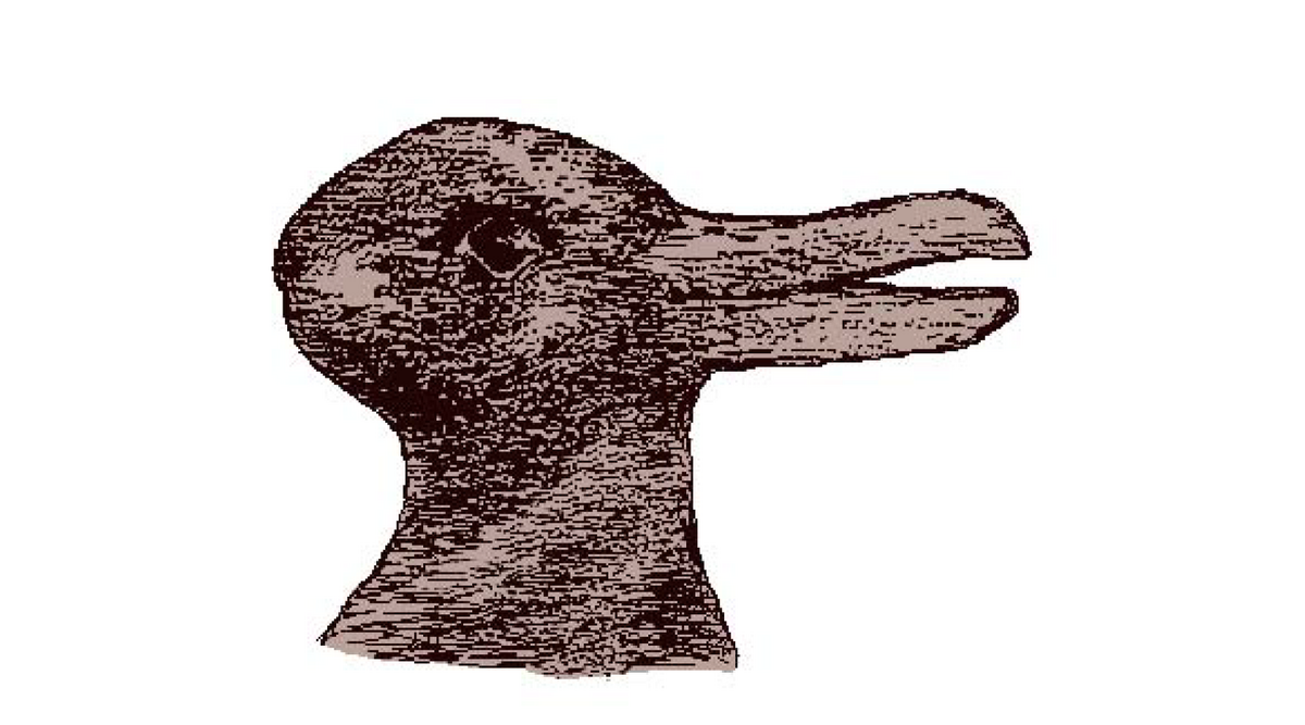 有名なウサギ-アヒル図である*1。この図はウサギのように見えたり、アヒルのように見えたりする。また、ウサギでもアヒルでもなく、単なるインクの固まりのように見ることも可能かもしれない。以下を読む前に、まず自分なりに上の図を見て、ウサギ状態、アヒル状態を行き来してみることをおすすめする。